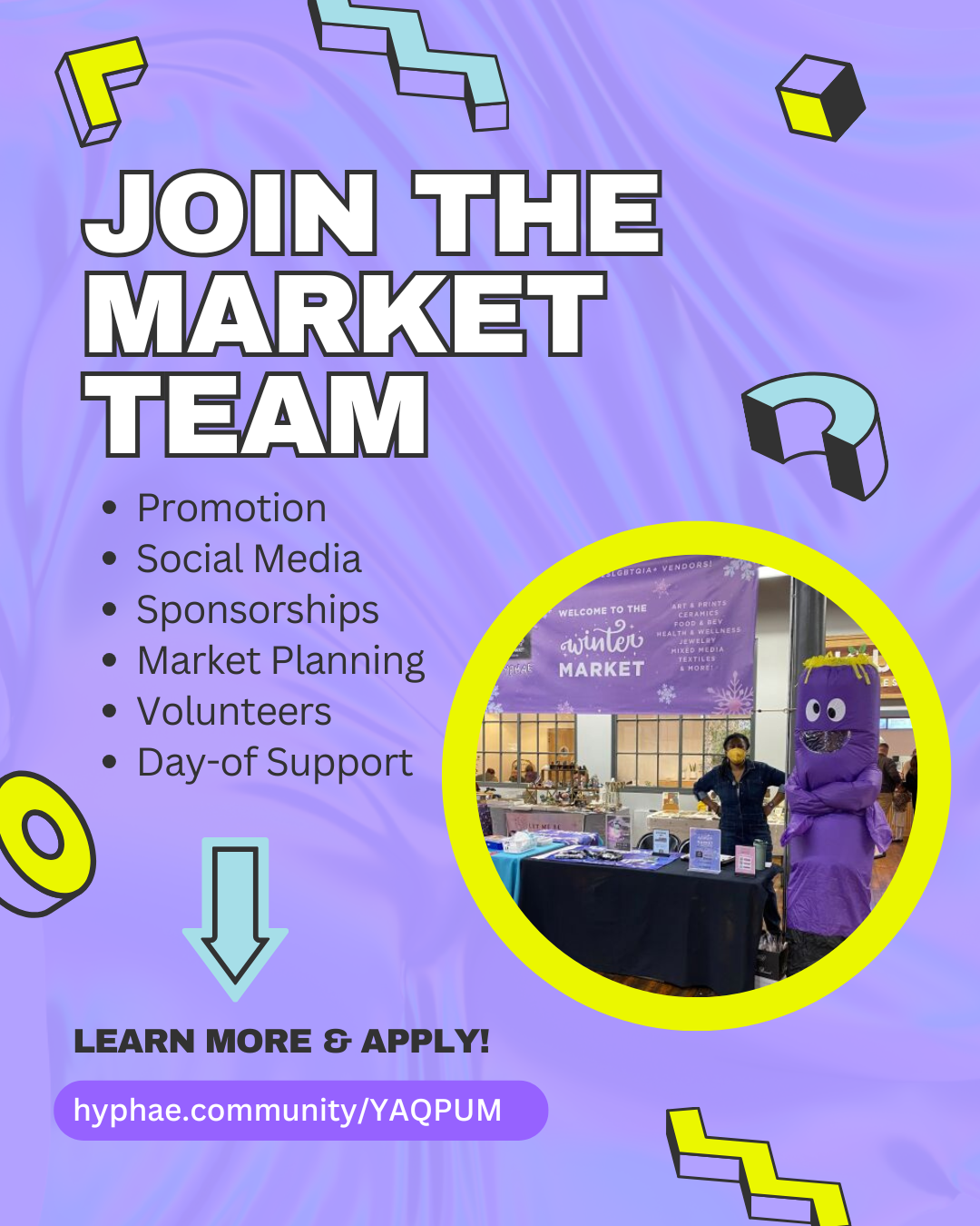 HYPHAE Community is a place for BIPOC and 2SLGBTQIA+ artists and makers of all kinds. HYPHAE: Makers Market & Skills Studio is the first 2SLGBTQIA+ and BIPOC-centered retail, workshop, and event space in Western Mass. Yet Another Queer Pop-Up Market is the premiere queer pop-up market in Massachusetts!